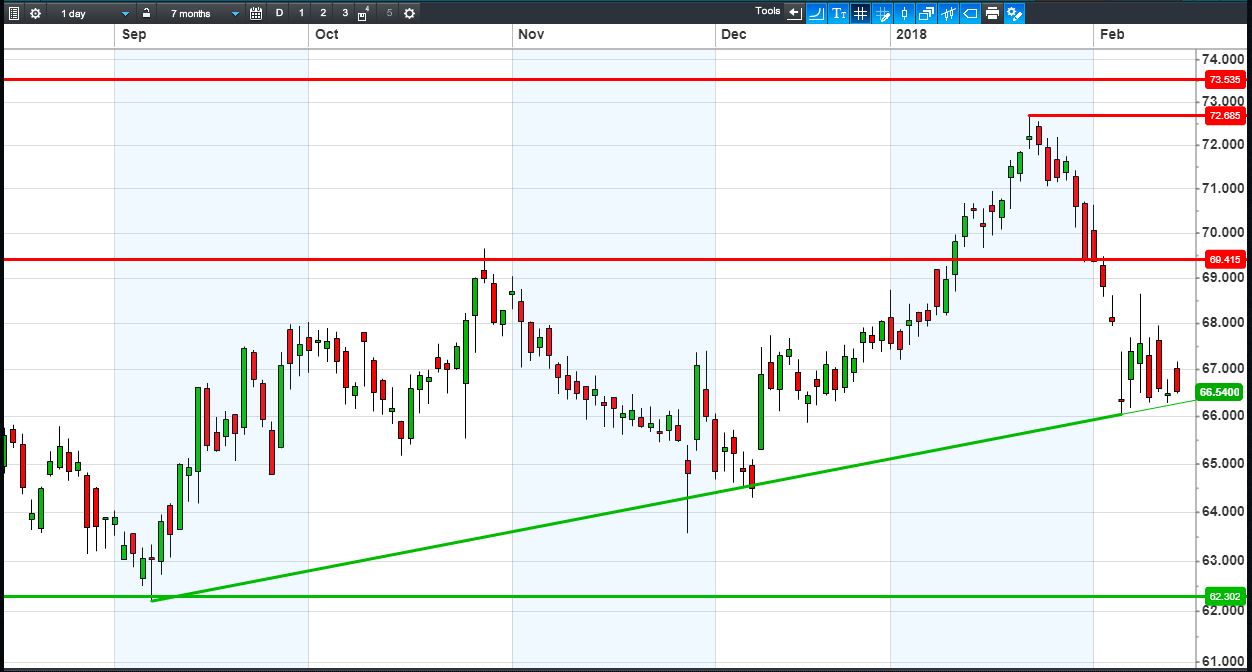 • Will the price fall towards lows of 62.3p (-6.4%)? or;