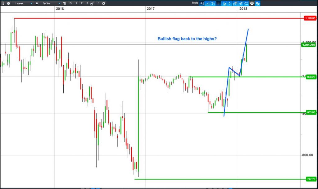 • Will the price rise towards highs of 1179p (+7.7%)?
