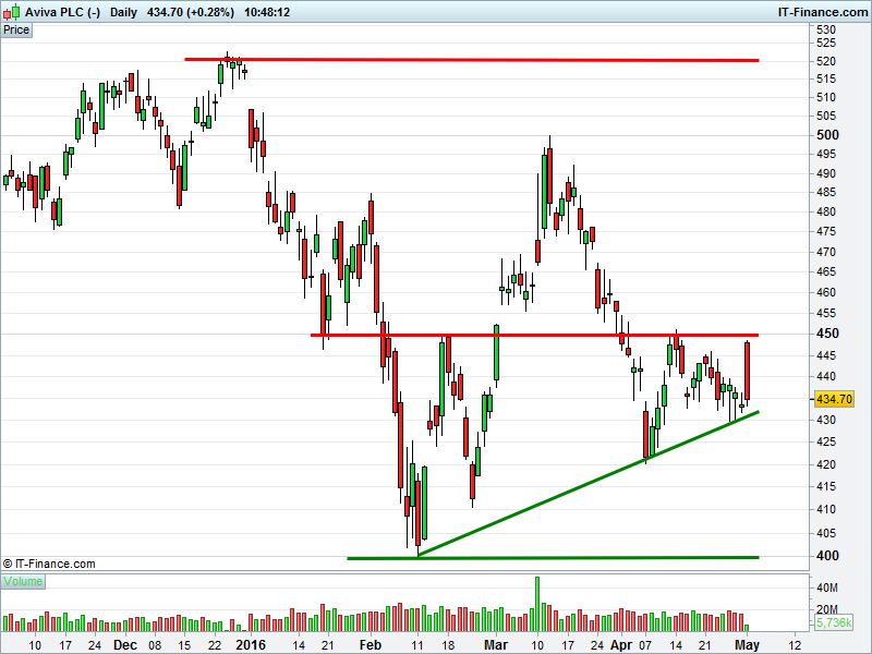 1. Will the price fall towards lows of 400p (-8%)? or;