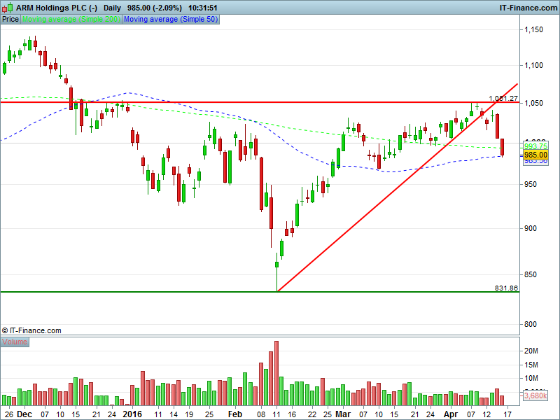 • Shares fell through intersecting support
