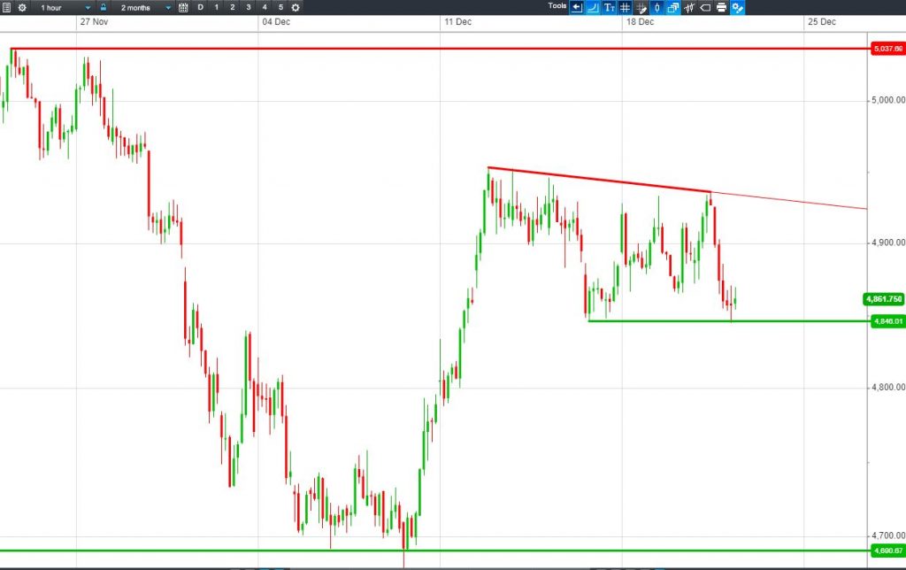 • Trading at 4846p support