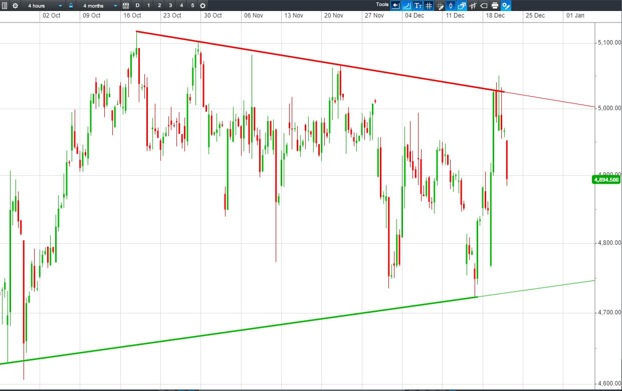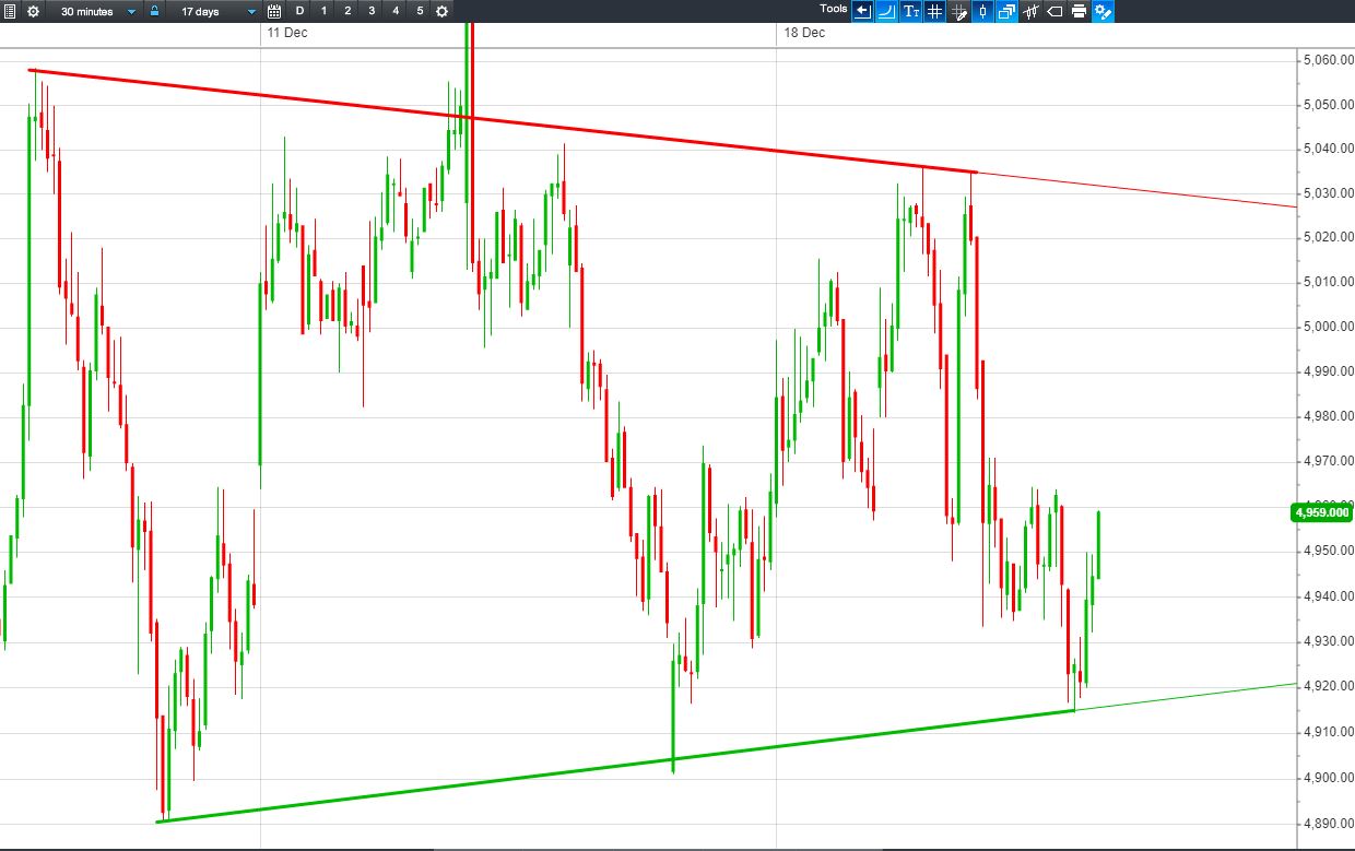 • Will the price fall towards lows of 4890p (-1.4%)? or;