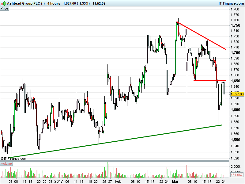 2. Will the price fall towards lows of 1580p (-2.9%)?