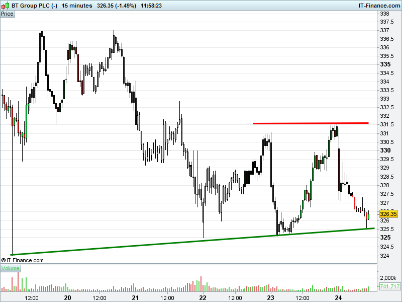 2. Will the price fall towards lows of 322p (-2.9%)?