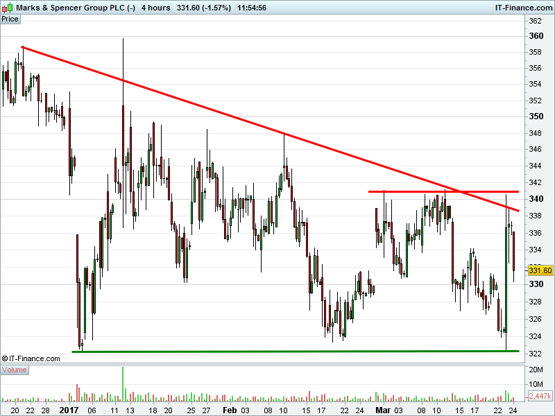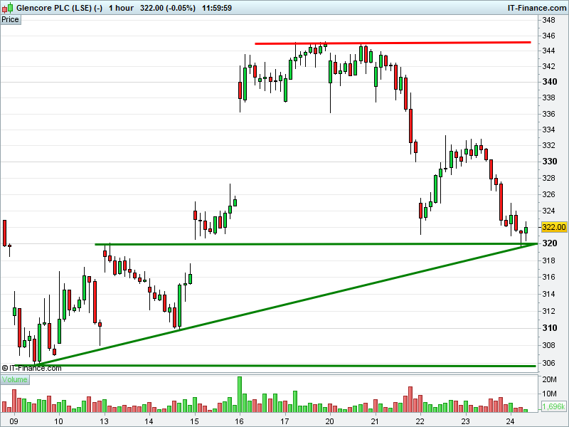 1. Will the price rise towards highs of 340p (+2.5%)? or;
