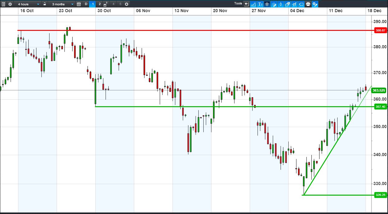• Will the price rise towards highs of 387p (+6.4%)?