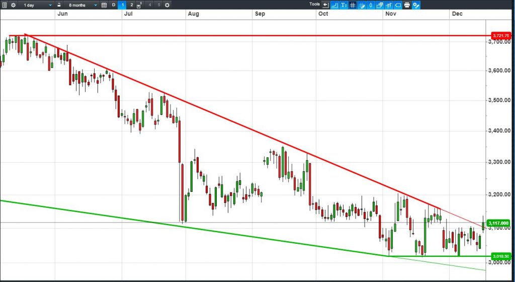 • Will the price fall towards lows of 3019p (-3.1%)? or;