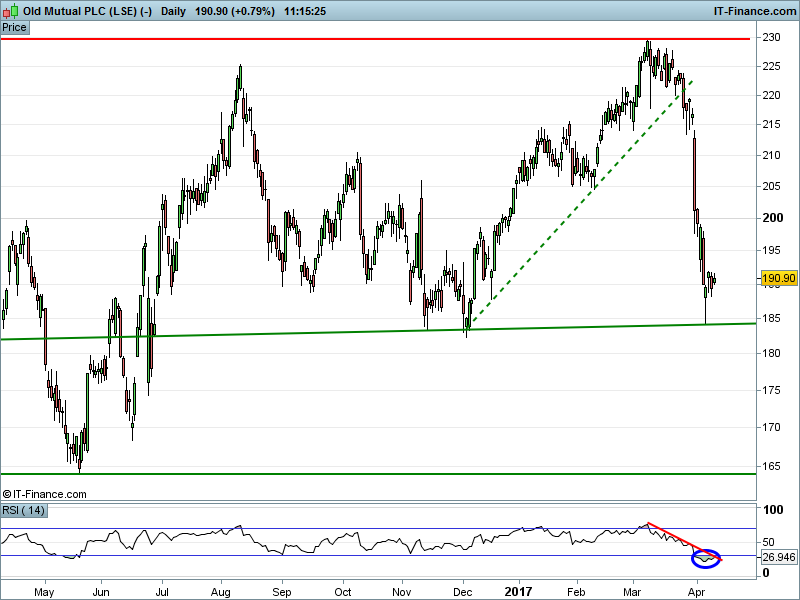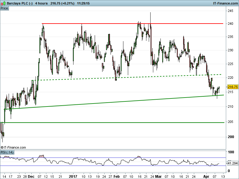 1. Will the price fall towards lows of 205p (-5.4%)? or;