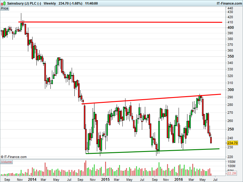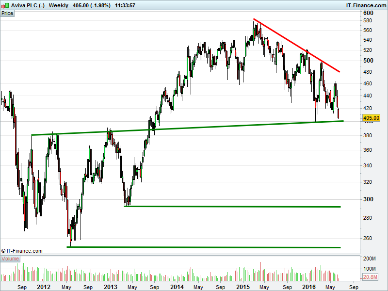 1. Will the price fall towards lows of 300p (-15%)? or;