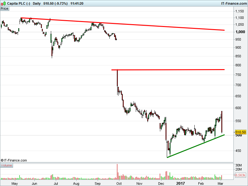 1. Will the price fall towards lows of 435p (-15%)? or;