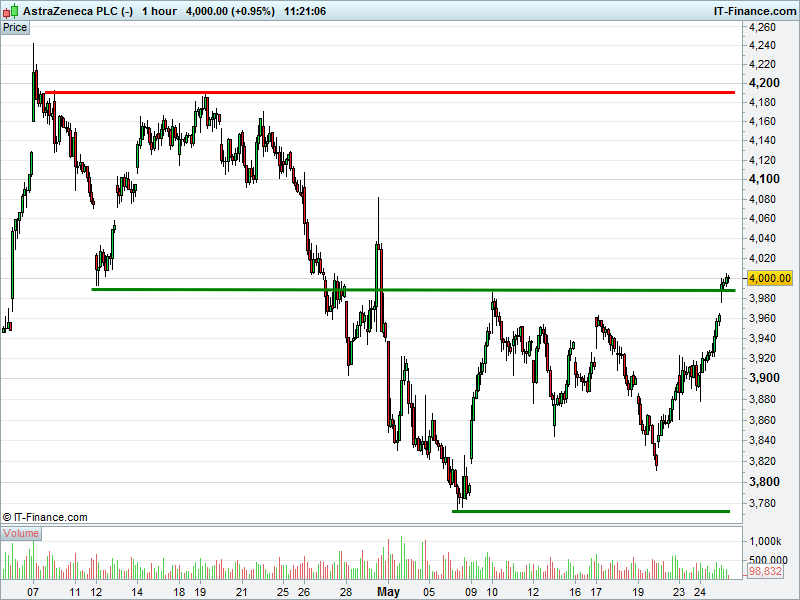1. Will the price breakdown towards lows of 3780p (-5%)? or;
