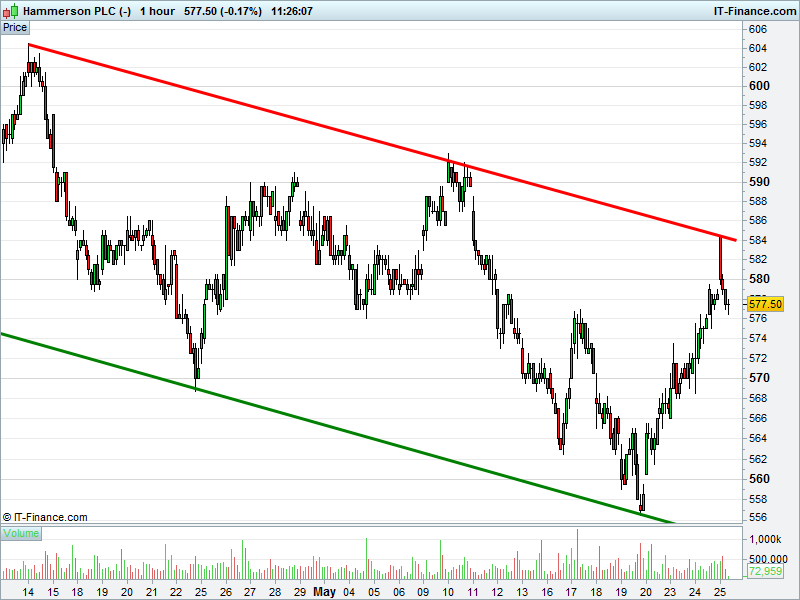 1. Will the price breakout towards highs of 604p (+5%)? or;