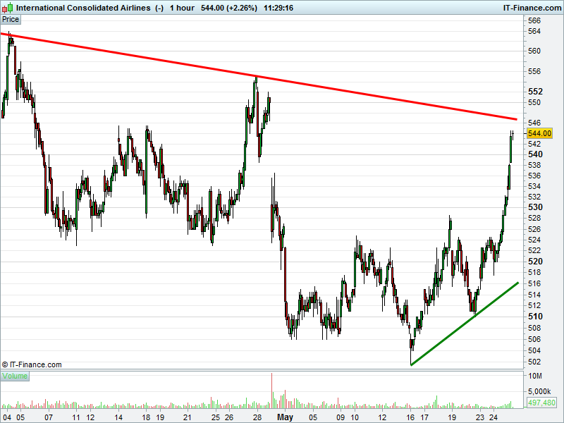 1. Will the price breakout towards highs of 564p (+4%)? or;