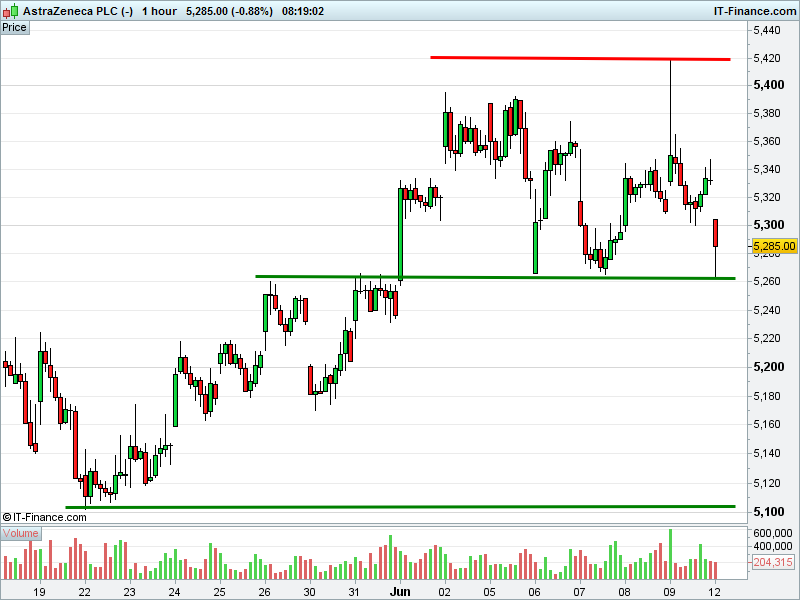 1. Will the price fall towards lows of 5100p (-3.5%)? or;