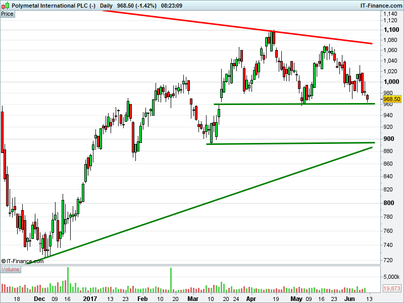 1. Will the price fall towards lows of 900p (-7.1%)? or;