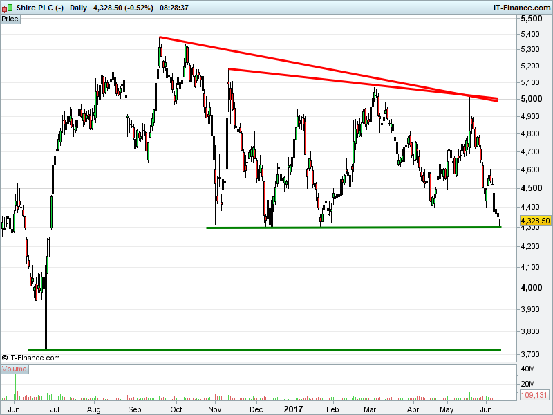 1. Will the price fall towards lows of 3700p (-14.5%)? or;