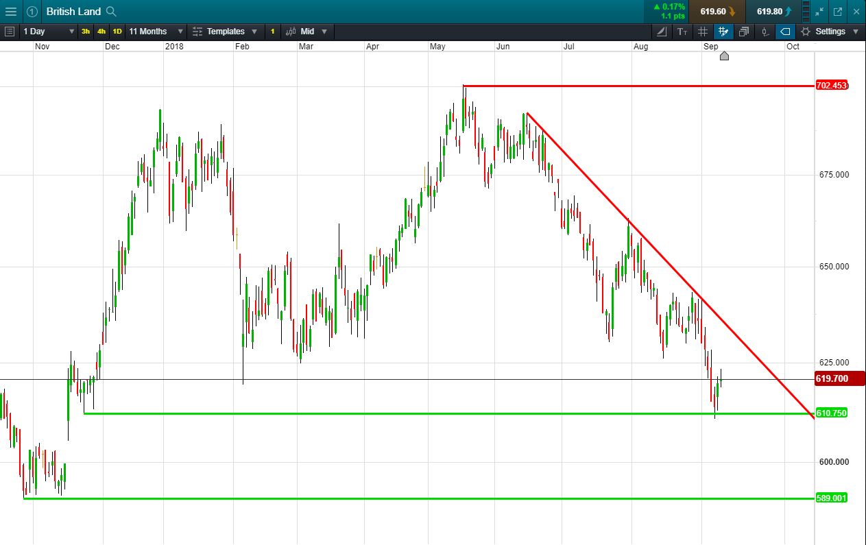 • Will the price fall towards lows of 589p (-4.8%)? or;