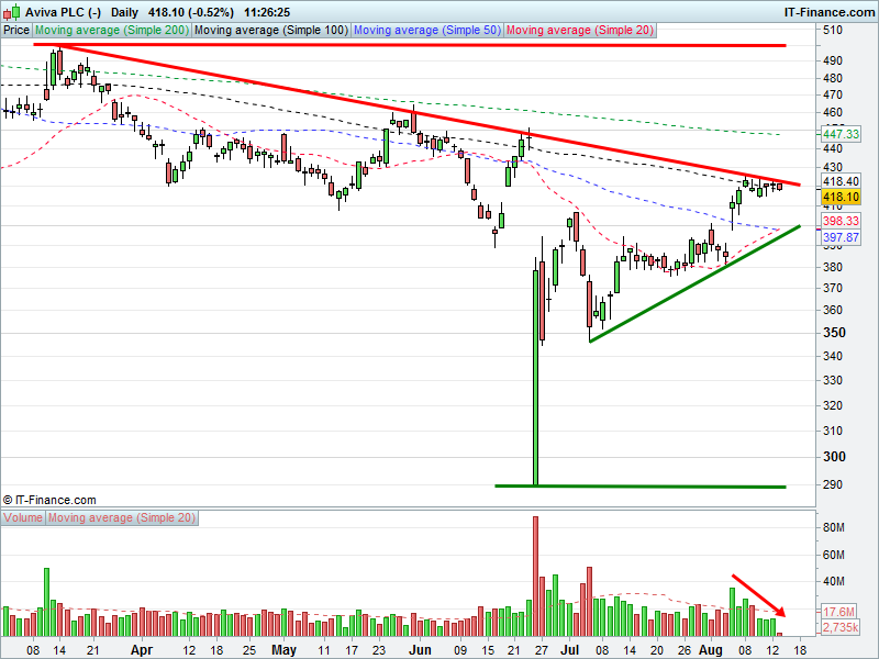 1. Will the price rise towards highs of 500p (+20%)? or;
