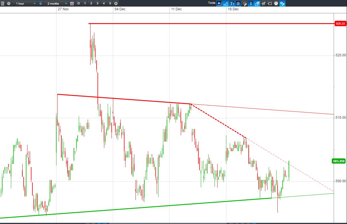 • Will the price fall towards lows of 495p (-1.6%)? or;