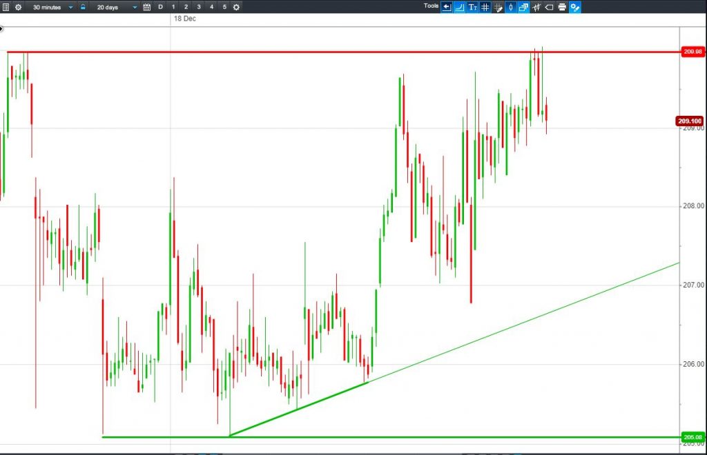 • Will the price rise towards highs of 210p (+0.5%)? or;