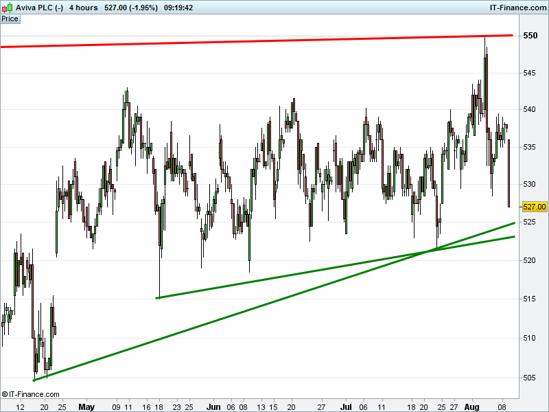 • Will the price fall towards lows of 505p (-4.2%)? or;