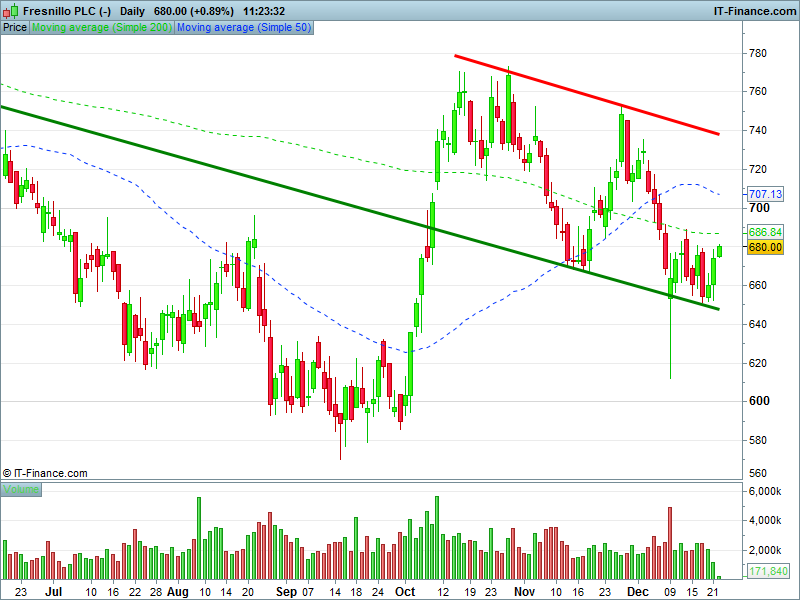 2. Will the price fall back beneath the channel floor 645p?