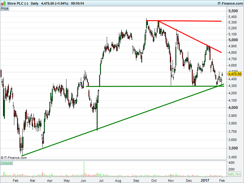 1. Will the price fall towards lows of 4300p (-3.9%)? or;