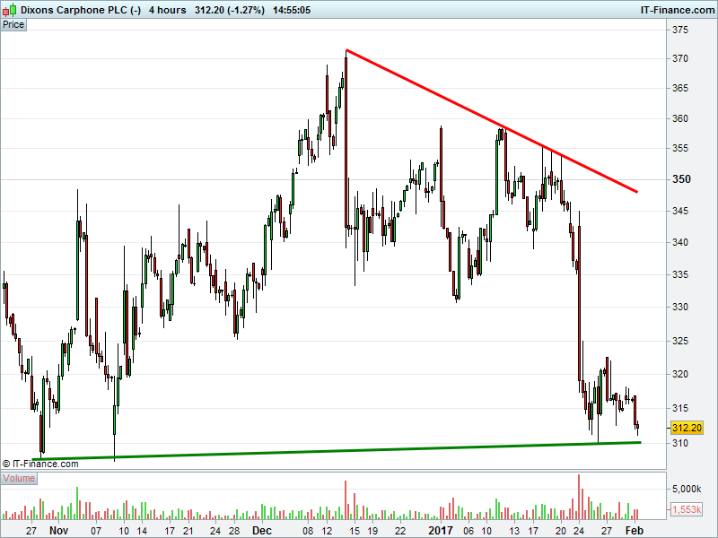 1. Will the price fall towards lows of 295p (-5.4%)? or;