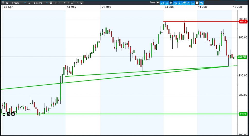 • Will the price rise towards highs of 658.7p (+3.0%)?
