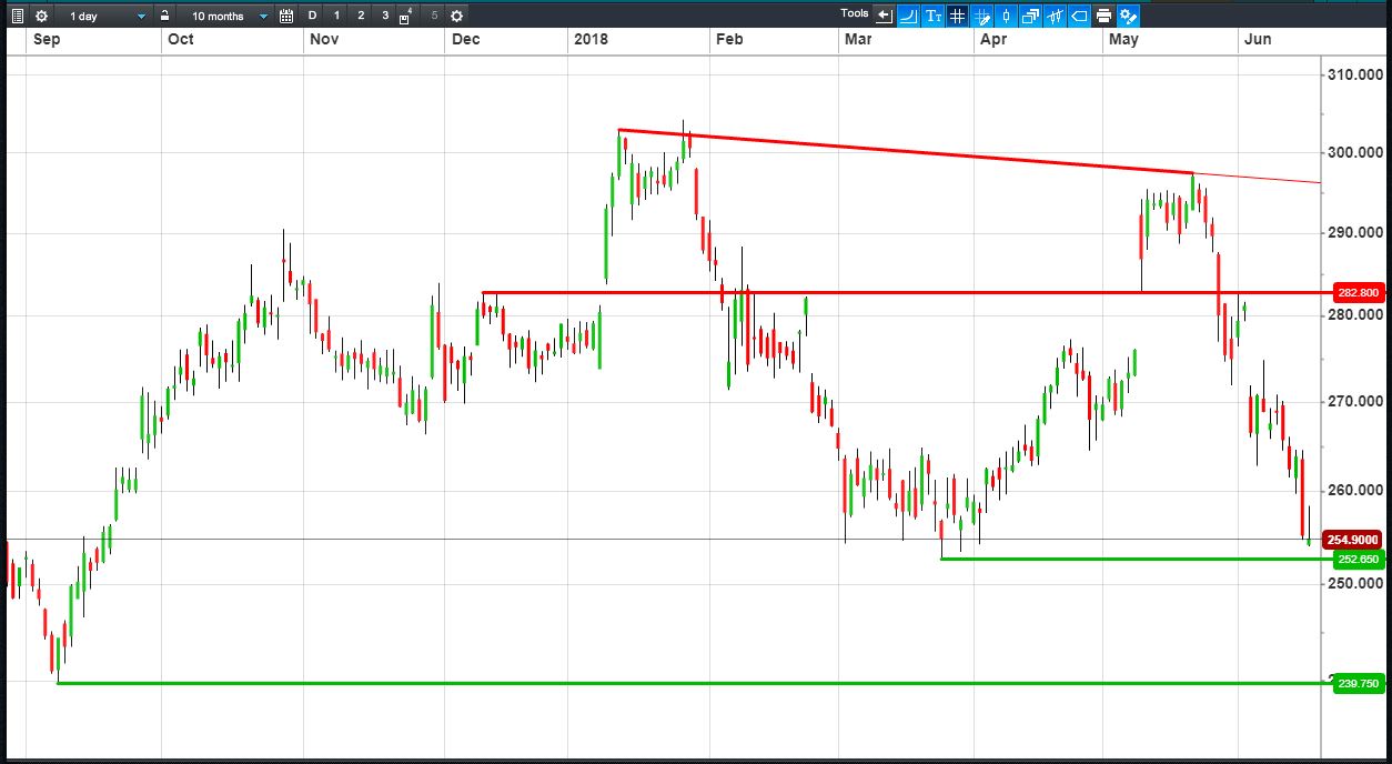 • Will the price fall towards lows of 239.75p (-5.9%)? or;