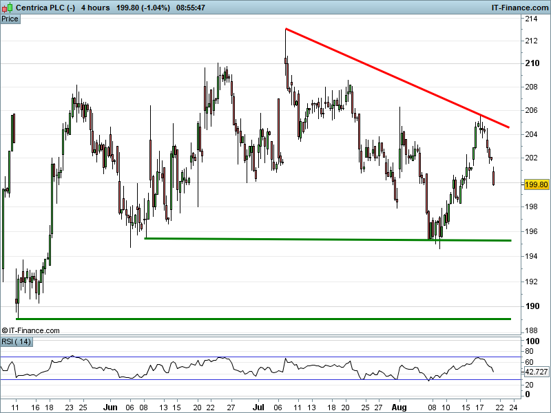 • Will the price rise towards highs of 213p (+6.6%)?  or;