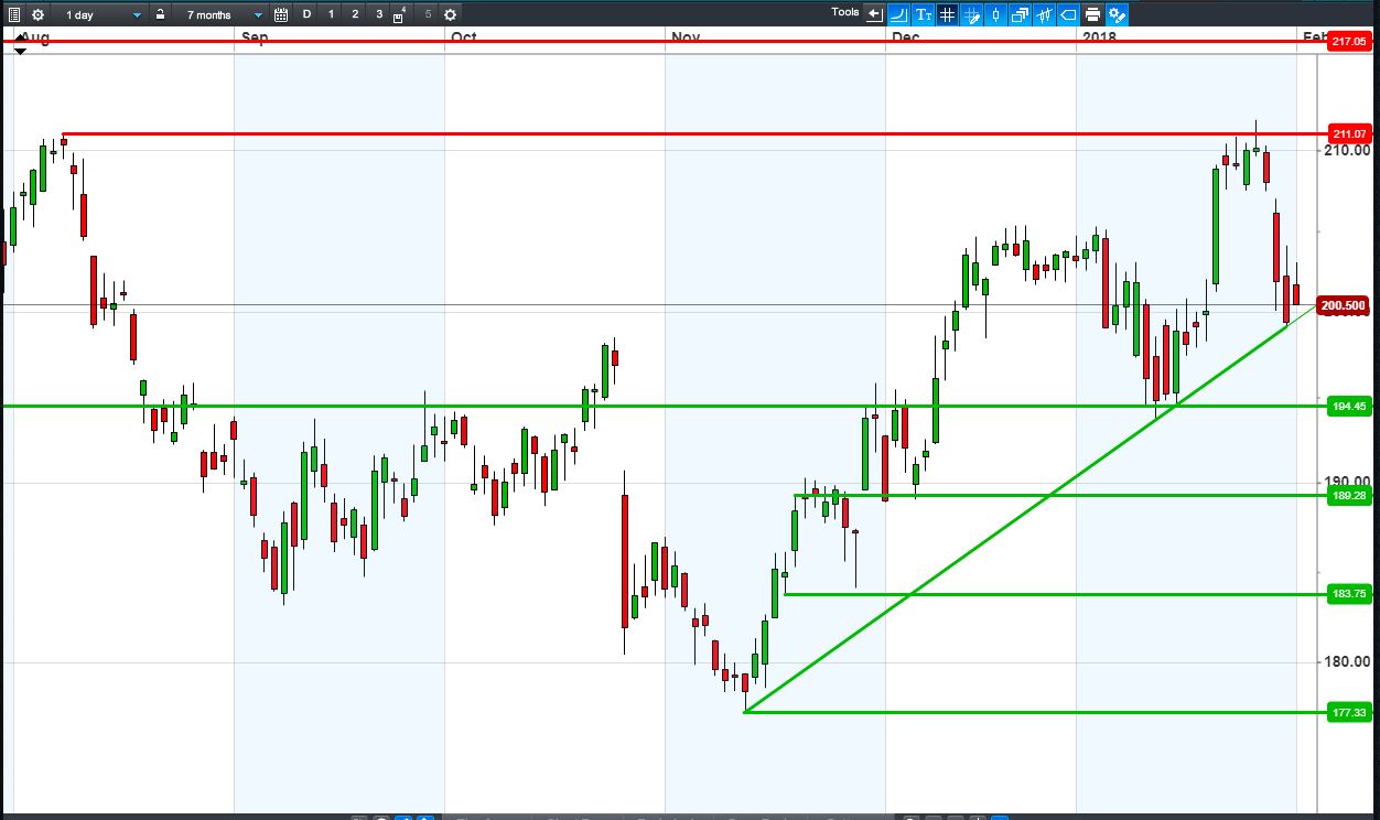 • Will the price fall towards lows of 195p (-2.7%)? or;