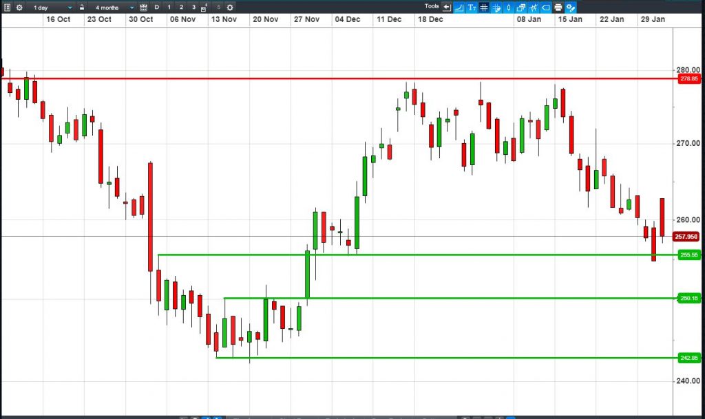 • Will the price fall towards lows of 250p (-2.7%)? or;