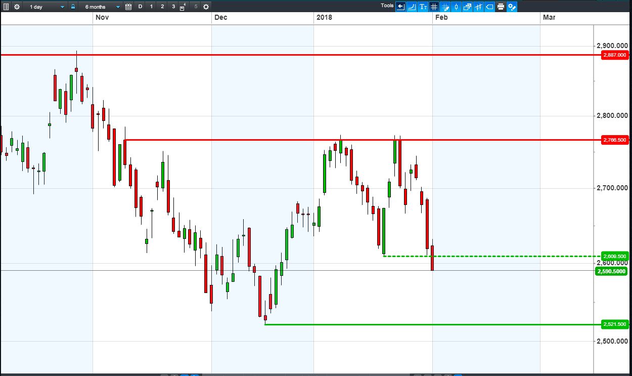 • Will the price fall towards lows of 2521p (-2.7%)?