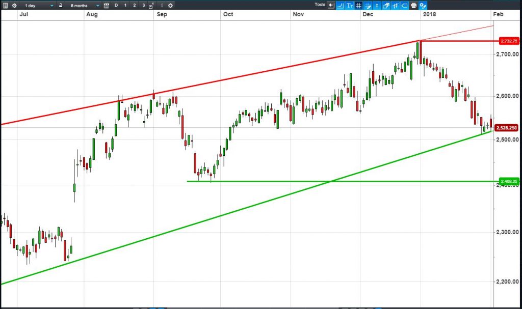 • Will the price fall towards lows of 2408p (-4.7%)? or;