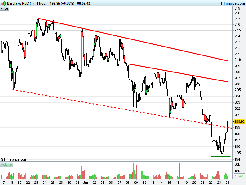 1. Will the price fall towards lows of 194.5p (-2.7%)? or;