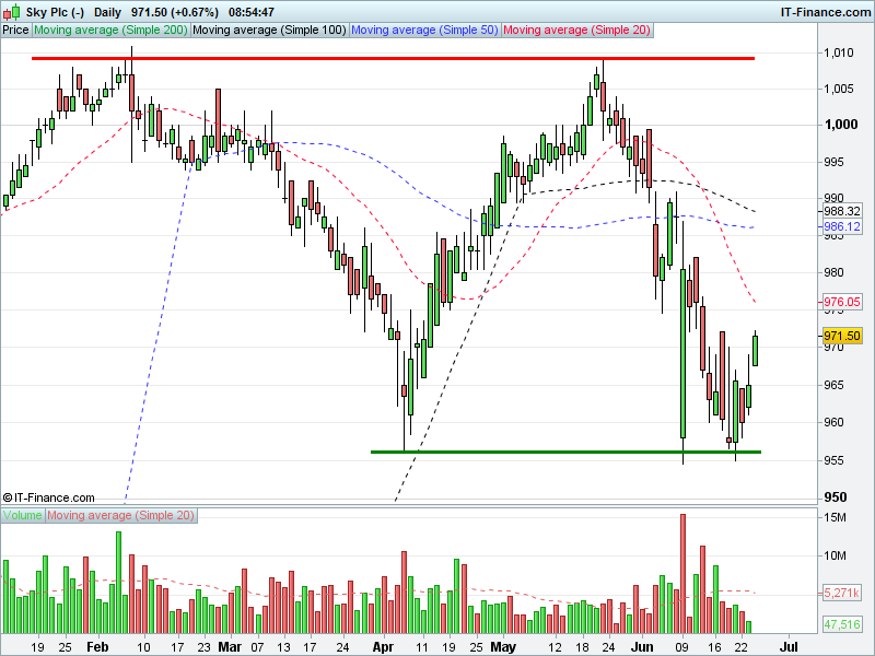 • Will the price fall towards lows of 955p (-1.7%)? or;