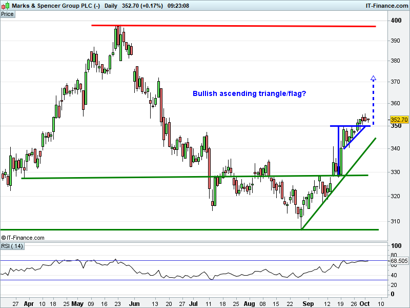 • Will the price rise towards highs of 375p (+6.0%)?