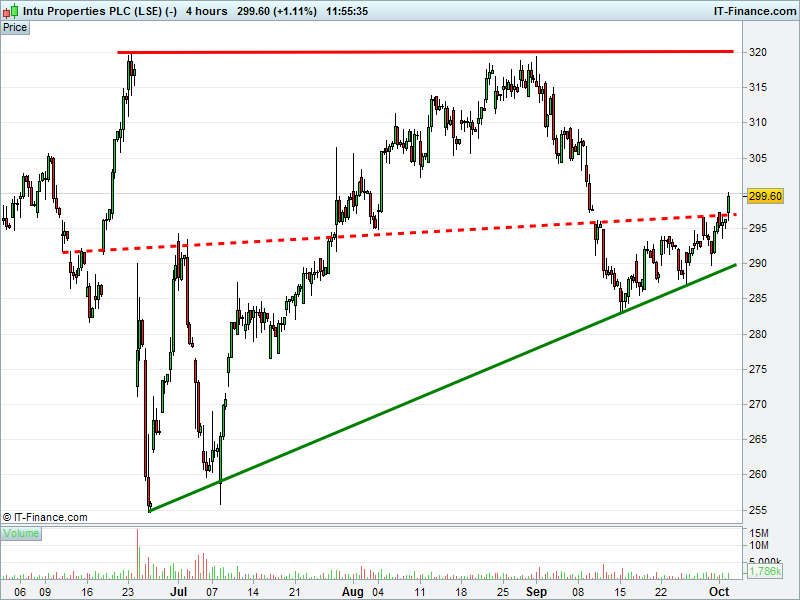 1. Will the price fall towards lows of 255p (-15%)? or;