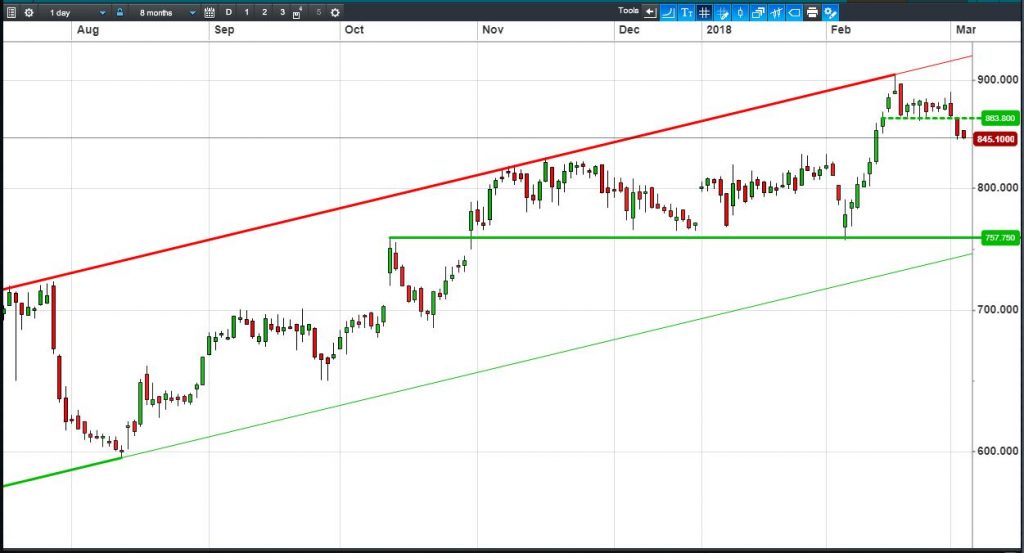 • Will the price rise towards highs of 900p (+6.5%)? or;