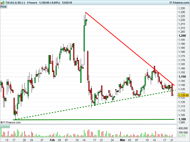 2. Will the price fall towards lows of 1100p (-2.5%)?