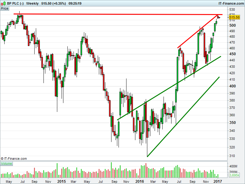 1. Will the price rise towards highs of 530p (+3%)? or;