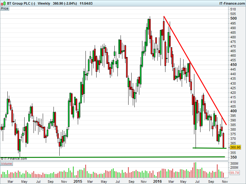 1. Will the price fall towards lows of 350p (-3%)? or;