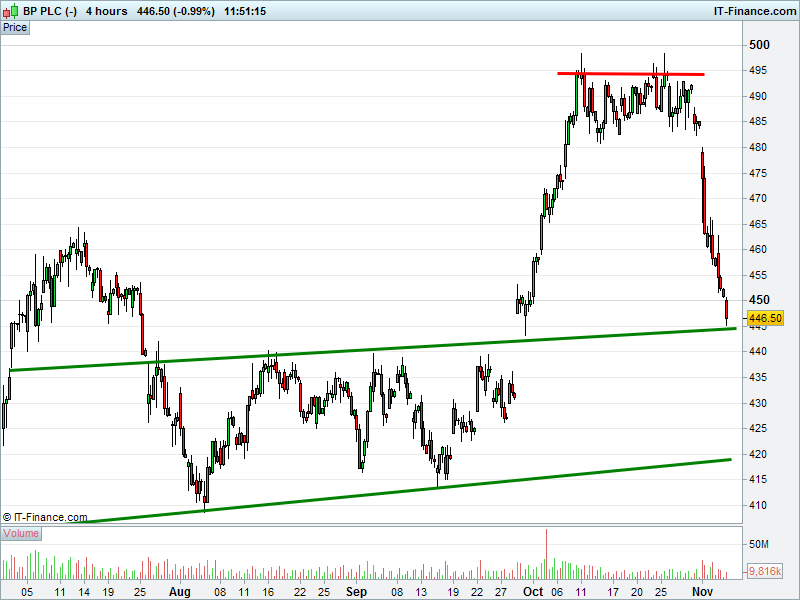 1. Will the price fall towards lows of 420p (-6%)? or;