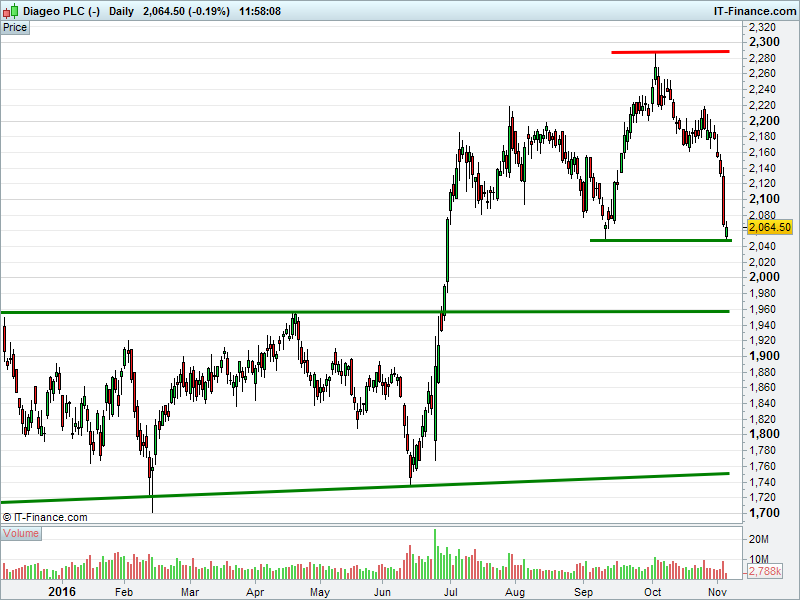 1. Will the price fall towards lows of 1750p (-15%)? or;