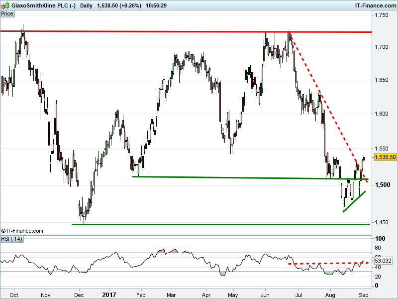 • Will the price fall towards lows of 1450p (-5.8%)? or;