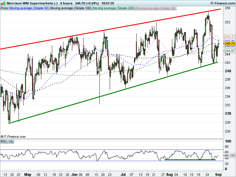 • Will the price fall towards lows of 242p (-1.9%)? or;