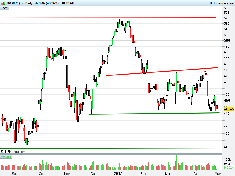 1. Will the price fall towards lows of 415p (-6.4%)? or;