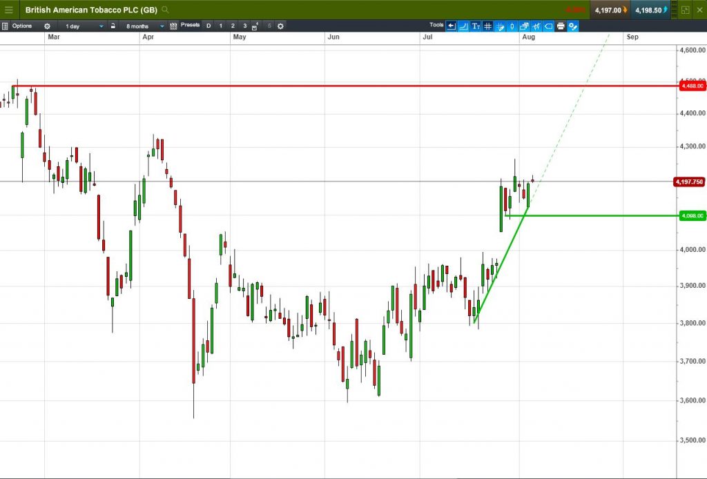 • Will the price fall towards lows of 4098p (-2.4%)? or;