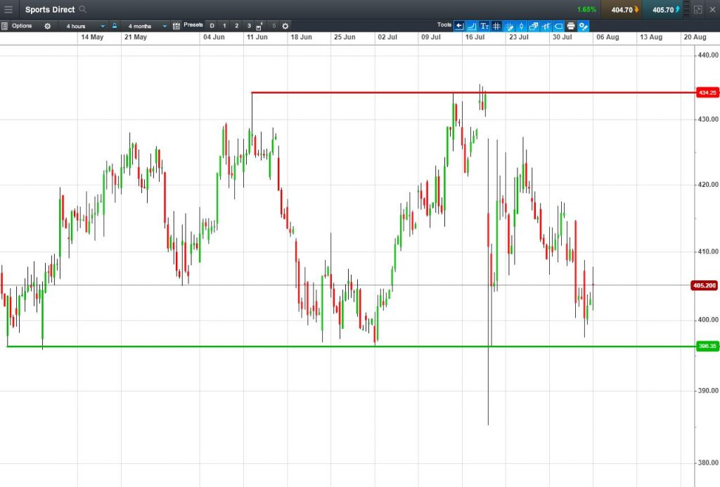• Will the price fall towards lows of 396p (-2.2%)? or;